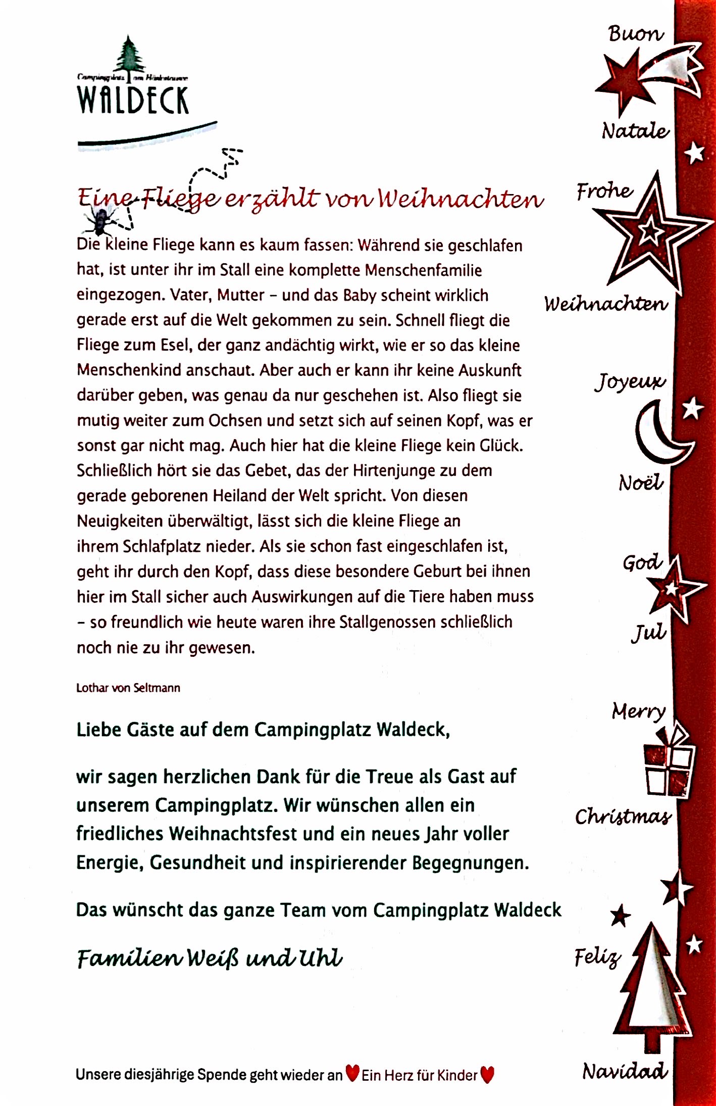 - Liebe Campingfreunde, wir wünschen Ihnen ein wunderschönes, besinnliches Weihnachtsfest im Kreise Ihrer Lieben und einen gelungenen Start in ein glückliches, gesundes neues Jahr 2026!
