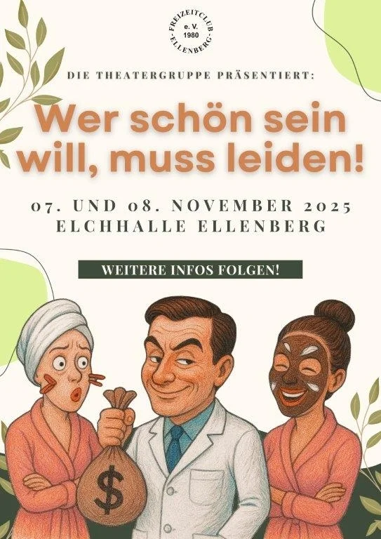 Die Theatergruppe Ellenberg spielt am 07.11 und 08.11.2025 jeweils um 19:30 Uhr in der Elchhalle Ellenberg.